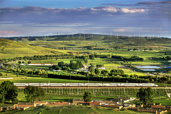 光明日報:一列火車(chē)經(jīng)過(guò)內蒙古準格爾旗的稻田